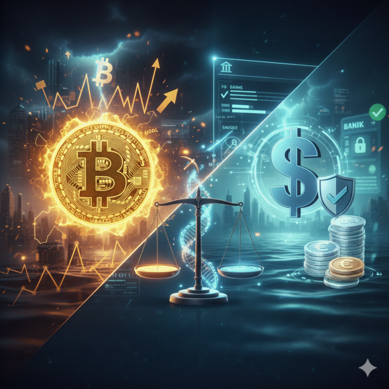 Bitcoin e Stablecoins são duas faces da mesma revolução blockchain, mas com funções opostas. O Bitcoin (BTC) é o ativo volátil, o pilar de crescimento e reserva de valor a longo prazo, carregando o maior risco de mercado e o maior potencial de retorno. As Stablecoins são o porto seguro, a ferramenta de proteção de capital e de liquidez que permite ao investidor navegar pelo mercado cripto sem ser devorado pela volatilidade.
