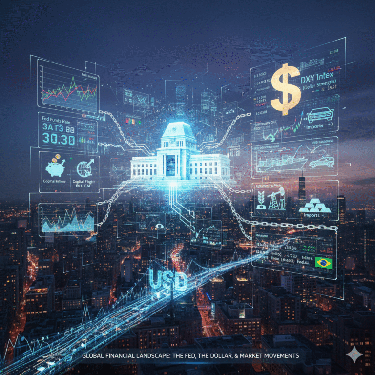 - Inflação e Selic: Se o dólar se fortalece devido ao Fed, importados encarecem. Para combater essa inflação importada e evitar a fuga de capitais, o Banco Central do Brasil pode ser forçado a manter ou até elevar a Selic, mesmo que o cenário doméstico não justificasse tal aperto.