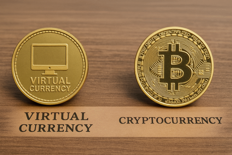 Embora muitas pessoas usem os termos como sinônimos, moeda virtual e criptomoeda são conceitos diferentes. A primeira está ligada a ambientes específicos e centralizados, enquanto a segunda é descentralizada e baseada em blockchain.
