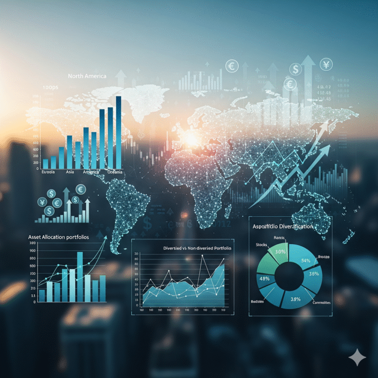 Uma carteira global ideal não é composta apenas por ações americanas. Uma verdadeira diversificação envolve diferentes classes de ativos, moedas e regiões geográficas.