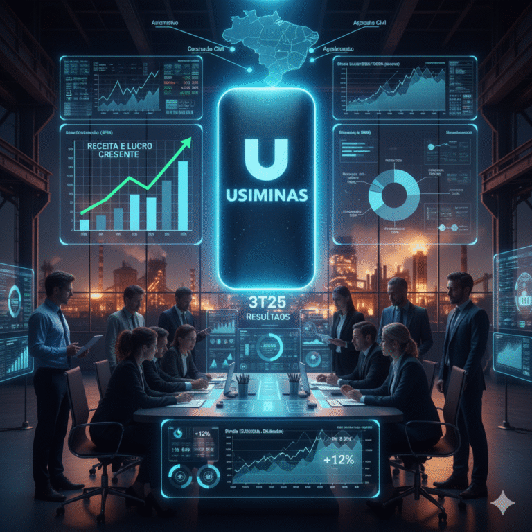 - Análise Usiminas (Hipotética): Suponhamos um lucro líquido de R$ 1,5 bilhão, um aumento de 15% em relação ao 3T24 e 8% em relação ao 2T25.
